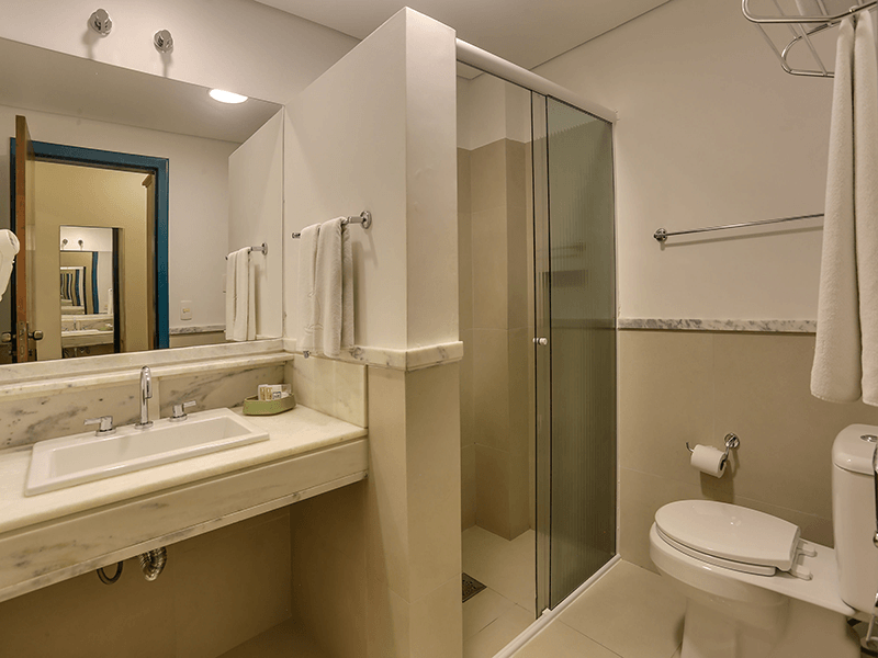- Banheiro privativo com secador de cabelo