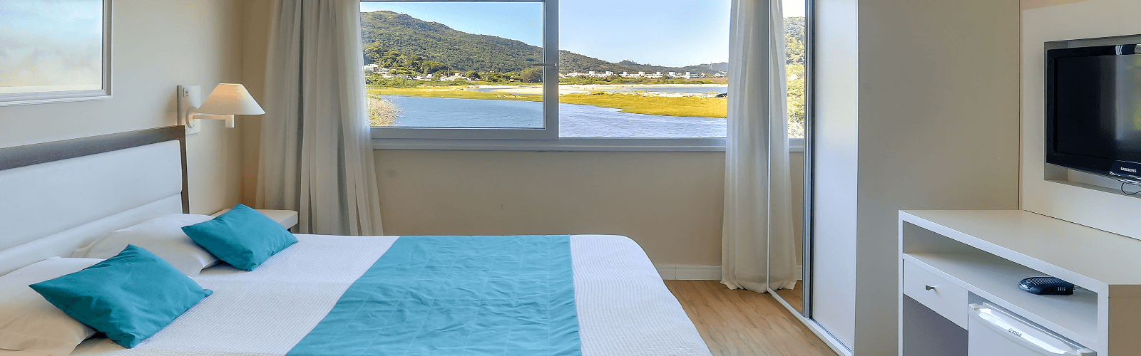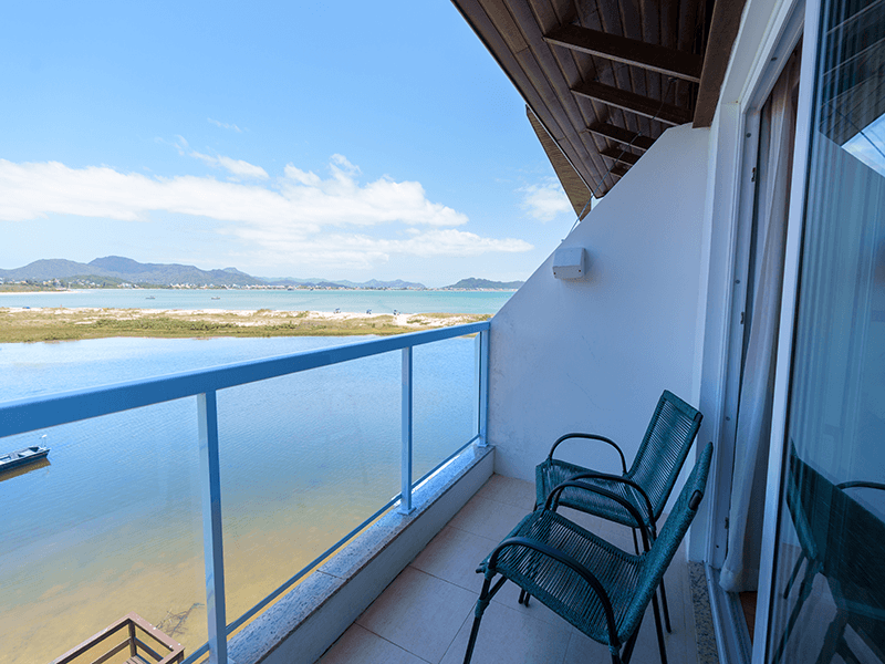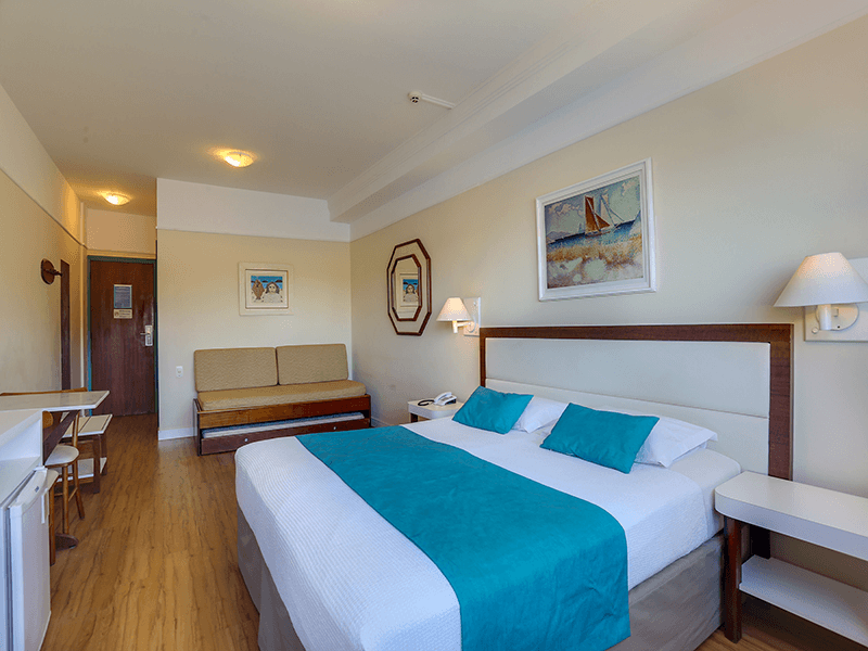 Capacidade para 4 pessoas em um ambiente, com cama de casal, mais sofá cama com bicama. Possui bonita vista lateral da Praia de Ponta das Canas. Alguns apartamentos dispõem de sacada lateral com linda vista para o mar.