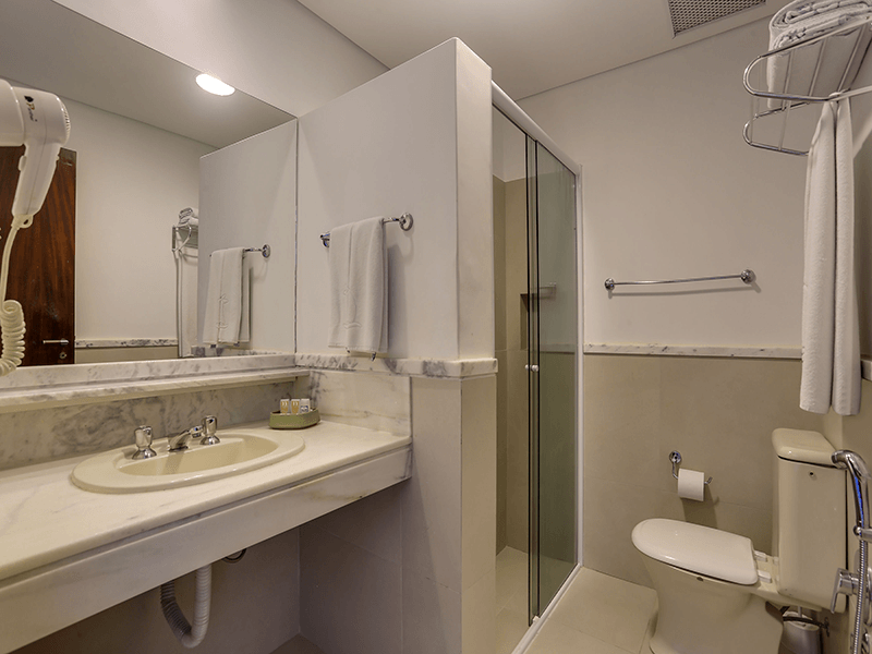 - Banheiro privativo com secador de cabelo